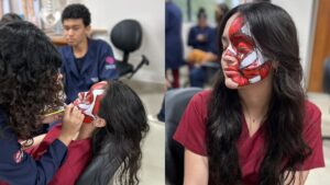 O curso de Psicologia da Faculdade Santa Teresa realizou uma aula prática com os acadêmicos do 1º período, utilizando a técnica de Body Painting como recurso didático para o ensino de Anatomofisiologia. A atividade teve como objetivo tornar mais visual, interativa e significativa a compreensão dos sistemas do corpo humano.
