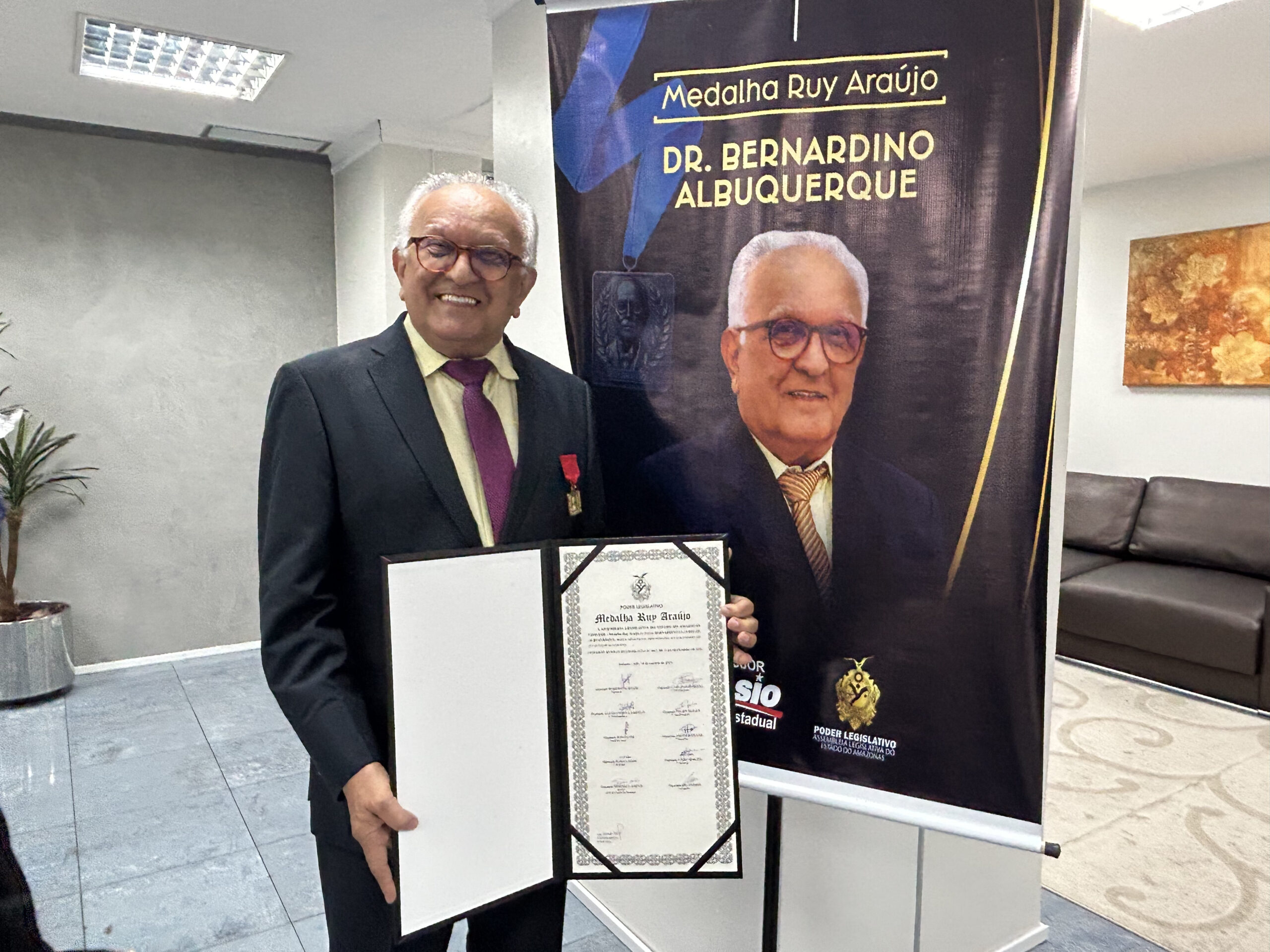 Na última segunda-feira, 14 de outubro, o médico infectologista Bernardino Cláudio de Albuquerque, que também é professor e coordenador do curso de Medicina na Faculdade Santa Teresa, foi condecorado com a Medalha Ruy Araújo durante uma Sessão Especial na Assembleia Legislativa do Amazonas (Aleam). A cerimônia destacou sua significativa contribuição à saúde e à educação no estado.