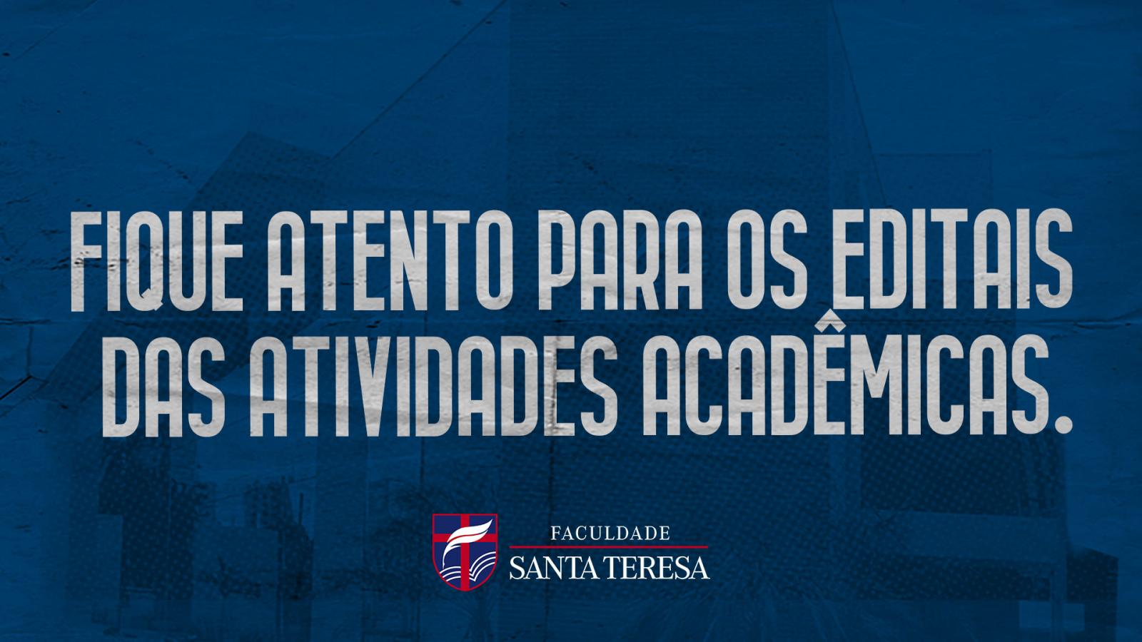 A Faculdade Santa Teresa torna público o Edital de Nivelamento e o Edital de Representatividade Discente, Edital de Pesquisa e Extensão e Monitoria ambos para o período de 2020/1. Para consultá-los, acesse os anexos a seguir: