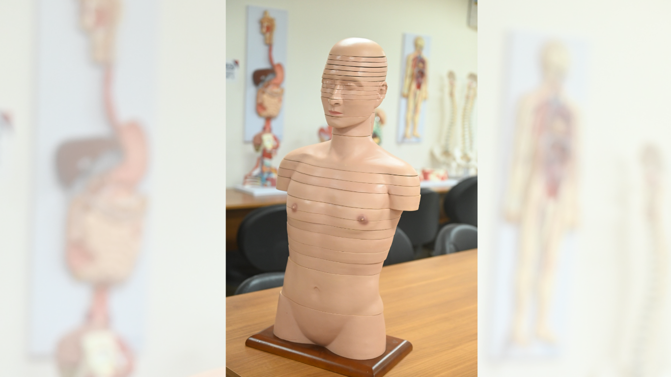 A Faculdade Santa Teresa conta com uma tecnologia inovadora para a formação dos alunos do curso de Medicina: um modelo anatômico de torso adulto em corte axial, dividido em 24 discos removíveis e giratórios. O equipamento é essencial para o estudo detalhado de estruturas anatômicas e patologias, sendo amplamente utilizado em disciplinas voltadas ao diagnóstico por imagem, como tomografia e ressonância magnética.
