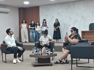 A programação foi organizada em parceria com os acadêmicos do 5º período do curso de Psicologia, que participaram ativamente da curadoria temática e da condução do evento, demonstrando comprometimento e sensibilidade diante das pautas sociais abordadas.