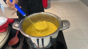 Luiz Fernando Milani, acadêmico do quarto período de Gastronomia e natural de Frederico Westphalen, no Rio Grande do Sul, falou sobre a importância de eventos como este. Ele compartilhou um pouco de sua história, marcada pela tradição de sua família no ramo de panificação e confeitaria francesa. “A principal importância desse tipo de evento é mostrar para as pessoas que a gastronomia não se resume ao que vemos em programas de TV como MasterChef ou Chef do Sabor. A gastronomia está acessível a todos, e feiras como esta são uma ótima oportunidade para diversificar os pratos, utilizando os insumos que temos aqui na região. Mostramos ao público uma variedade de pratos e como é possível inovar com produtos típicos como a macaxeira”, afirmou Luiz.