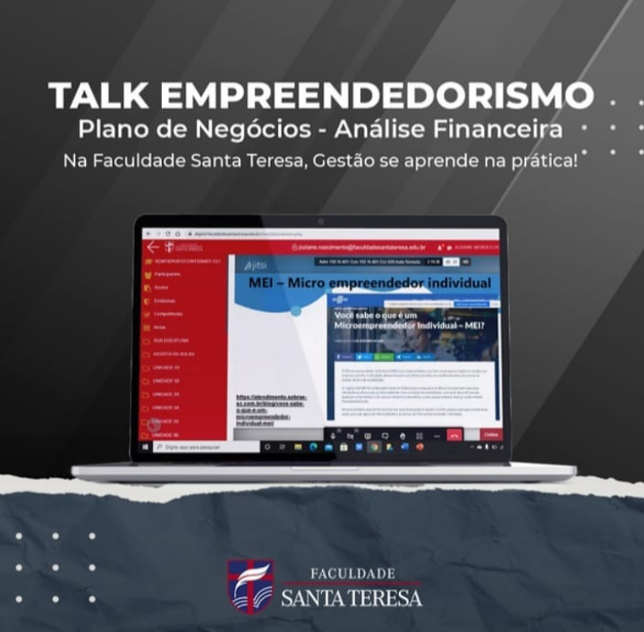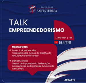 O Talk Empreendedorismo e Inovação da Faculdade Santa Teresa é um tipo de evento em que o diálogo coletivo sobre um tema é realizado e conta com participação de profissionais de mercado e intermediação de um mediador. Na Faculdade Santa Teresa, o Talk é um evento institucional realizado semestralmente e busca discutir experiências e conhecimentos relacionados ao empreendedorismo, inovação e liderança.