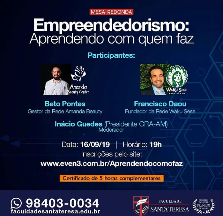 No mundo moderno as organizações estão cada vez mais conectadas em redes e são cada vez mais interdependentes entre si. E considerando o incremento da abordagem do tema Empreendedorismo e Inovação, a Faculdade Santa Teresa reconhece a importância de estreitar laços e favorecer networking com instituições que promovem, orientam e executam a empreendedorismo e a inovação no Estado do Amazonas. Por isso, abre suas portas para sediar eventos, convidar profissionais para atuarem como preletores nas ações desenvolvidas internamente bem como viabilizar visita técnica e usufruto a espaços destas organizações parceiras.