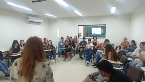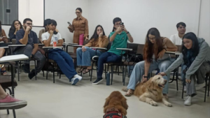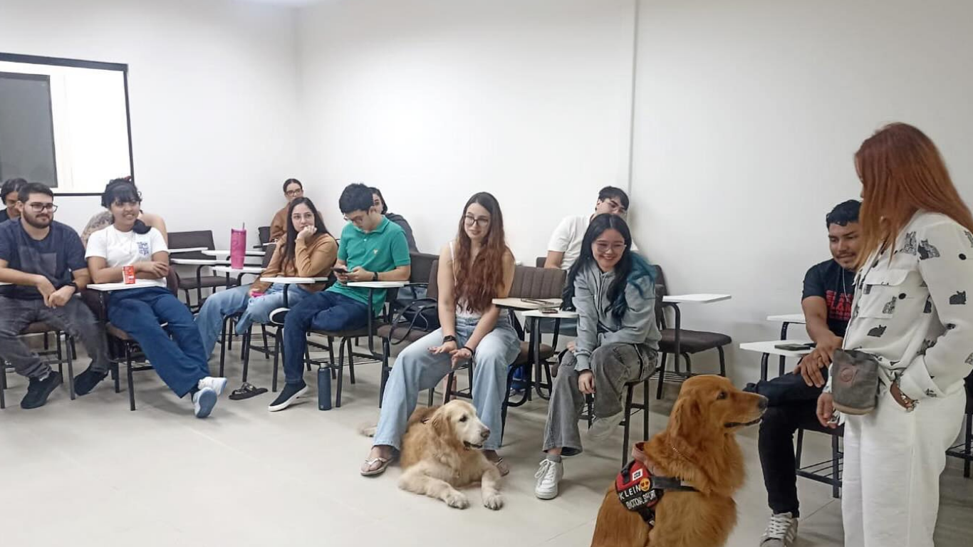 Na última quinta-feira (6), a disciplina Teoria e Prática na Análise do Comportamento, do curso de Psicologia, promoveu a palestra “A força terapêutica do vínculo homem-animal na clínica contemporânea”, ministrada pela neuropsicopedagoga Cláudia Araújo, com participação especial das pets Melissa Araújo e Melanie Klein Araújo.