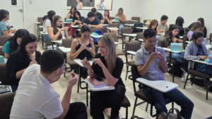 Durante a aula, os estudantes analisaram detalhadamente a morfologia, função e relevância estética dos incisivos, elementos essenciais para a oclusão e o cuidado odontológico. Em seguida, a prática de escultura dental permitiu que os acadêmicos reproduzissem, com precisão, os detalhes estruturais dos dentes, desenvolvendo atenção aos detalhes e habilidades manuais indispensáveis para o exercício da profissão.